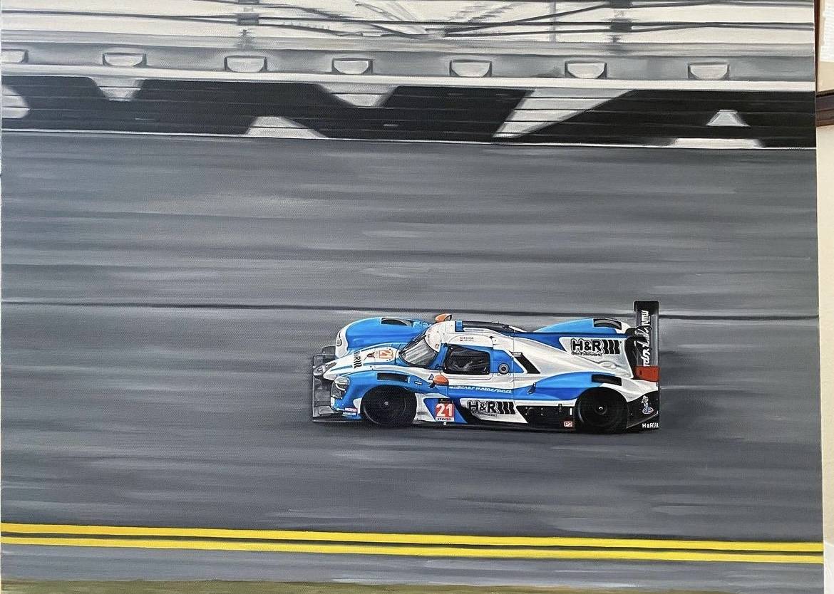 I love what I do. It was definitely a labor of love. The most recent painting I produced, the 48 GT3 at Daytona with the grandstands in the background, I don’t even know how many hours it took me because that one was a bit of experimenting. Doing those seats, the background alone probably Took me at least 115, 120 hours.