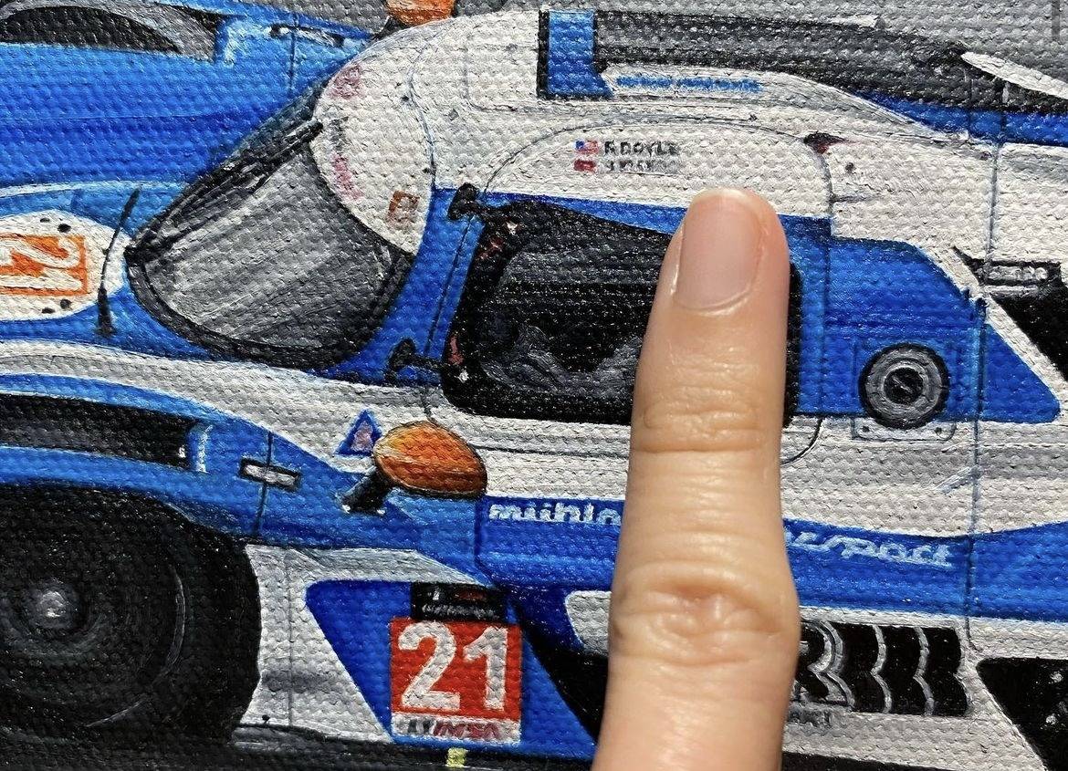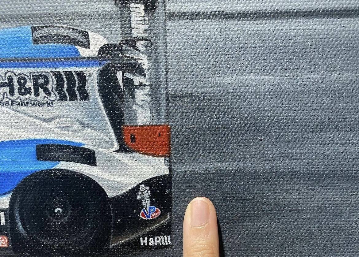 She credits motorsport photographers as essential collaborators. “I always ask permission to use a photo as reference, and I send them a print as a thank-you. Without them, I couldn’t do what I do.”