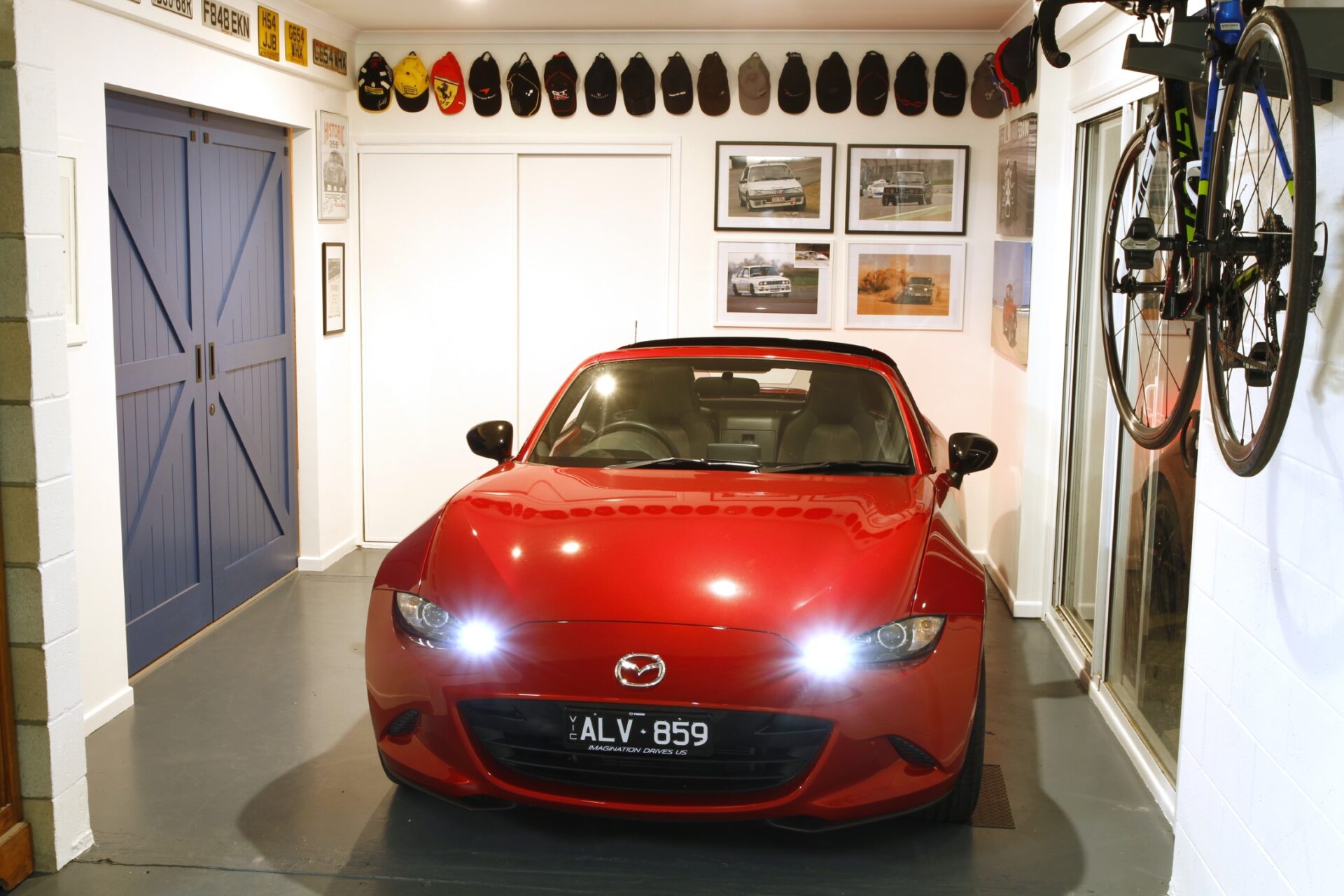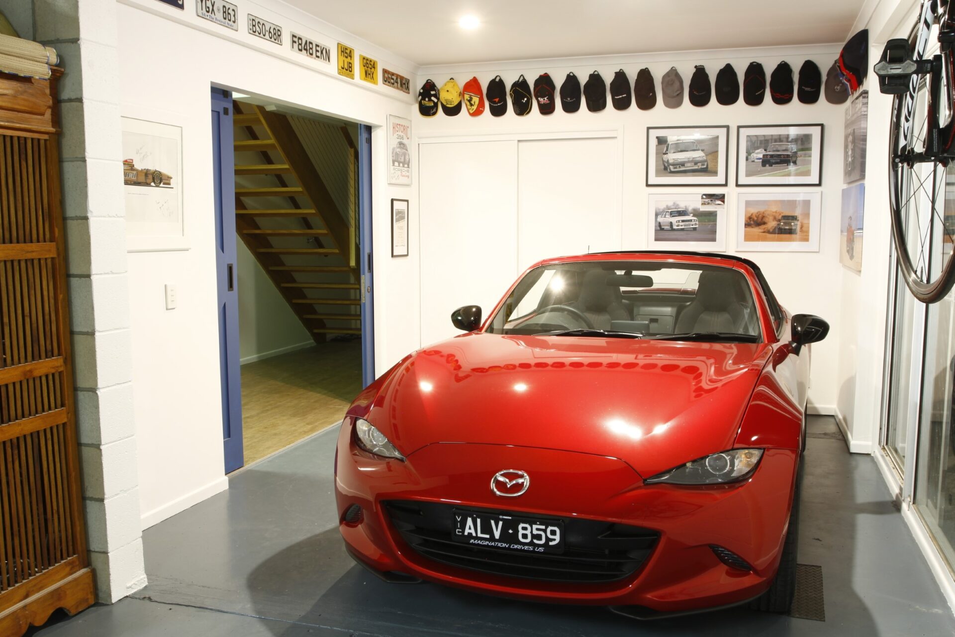 “I was surprised that she was interested in the idea, to be honest,” he laughed. “But it gave me a great opportunity to bring the car into the house, something I’ve long wanted to do, incorporate the home and garage into one. It’s a humble little garage, but I think that makes it even more interesting, it’s as if the room were truly set up solely for the purpose of parking a car, which is a fantastic conversation piece.”