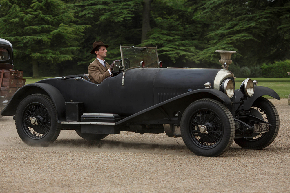 As we’ve talked about in previous articles, formal racing started in the early 20th century and by 1925 it wasn’t a new concept – but was purposed on the series as something foreign and exotic, to everyone except for Tom… the *former* Chauffer. The introduction of “yet another suitor” for Lady Mary – does make one’s eyes roll, but by Season 6, Henry Talbot was a candidate I could support. A handsome, stylish, English racing driver – woot! Apparently not related to the Talbot, Talbot-Sunbeam, or Talbot-Darracq car builder from what we can surmise. Henry is seen sporting around in a flat-black Bentley roadster (below) and repeatedly invites the Crawley family to come see him test the new car and finally race at Brooklands.