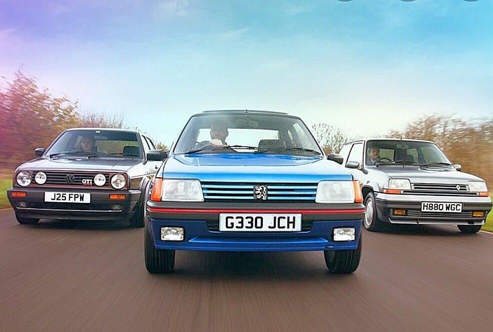 Two of the most iconic “Hot Hatches” are also French. Both the road going versions of the Peugeot 205 (center) and the Renault R5 (right) started life as your run of the mill front-wheel-drive people movers. Checking all the boxes, both vehicles had space for your grocery run, kids, poodle pup and came with roll up windows and a radio. How these two manufacturers bent the rules is still up for debate, but they transformed these unsalted baguettes into fire breathing, mid-engine, rear-wheel-drive missiles. Homologation be damned, when you write the rule book, you can change the rules! 😉
