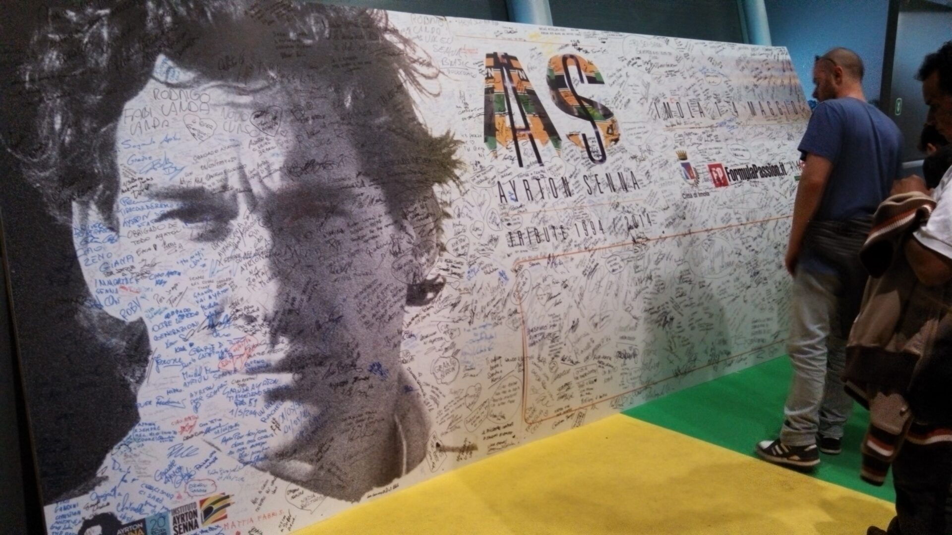 I’m like, Hmm. She’s like, we are not sure. I’m like, oh. She’s like, would you like to sign the guest book? Um, all right. It’s a hotel room, but I’m signing a guest book. Okay, I’ll sign the guest book. So I’m signing the guest book. A Spanish TV crew coming. Can we film you signing? So I had arrived to observe this weird beatification of Senna, and yet now I’m part of it.