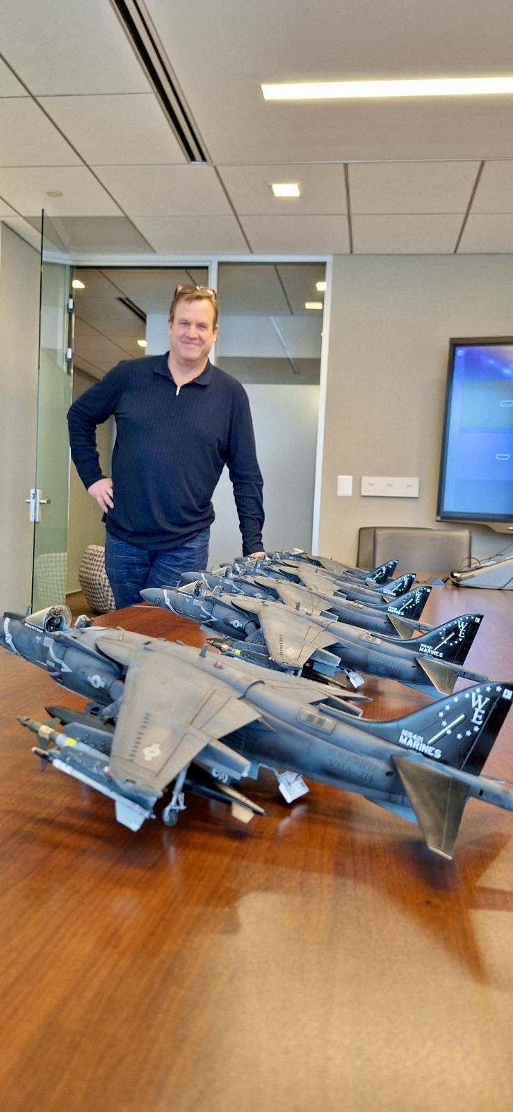 “The most challenging build I had to do was I was hired by the United States Marine Corps to build an entire squadron of Harrier jump jets for the 50th anniversary of the Black Sheep squadron, and these were 132nd scale aircraft. In their configuration. So I had to do everything custom to make it look exactly like those, but I don’t build models that just look like the thing I’m building the engines to where they’re all wired.”