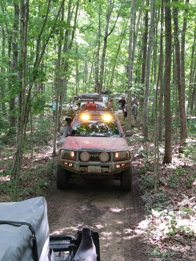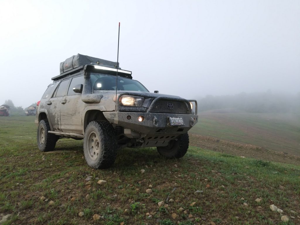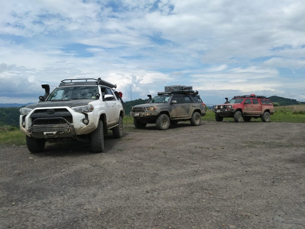 Day 2 – brought us less pavement and extra credit challenges. We watched as a land cruiser attempted to drive up one of the extra credit sections. It was a longer steeper hill with loose terrain. The truck did not have enough power to make it to the top sliding back down the hill, nearly toppling over sideways. We wisely chose to skip that section and continue on. At the end of the day, we were one of the first teams to finish, and when we came upon the last checkpoint we were told that he (the checkpoint official) was in the wrong location due to a communication error. We were a bit annoyed that we (and about 30 other trucks) had to turn around. We chose to not camp with the big group and found a great secluded campsite in the Kentucky Mountains up on a ridge a couple miles from the rest of the competitors.