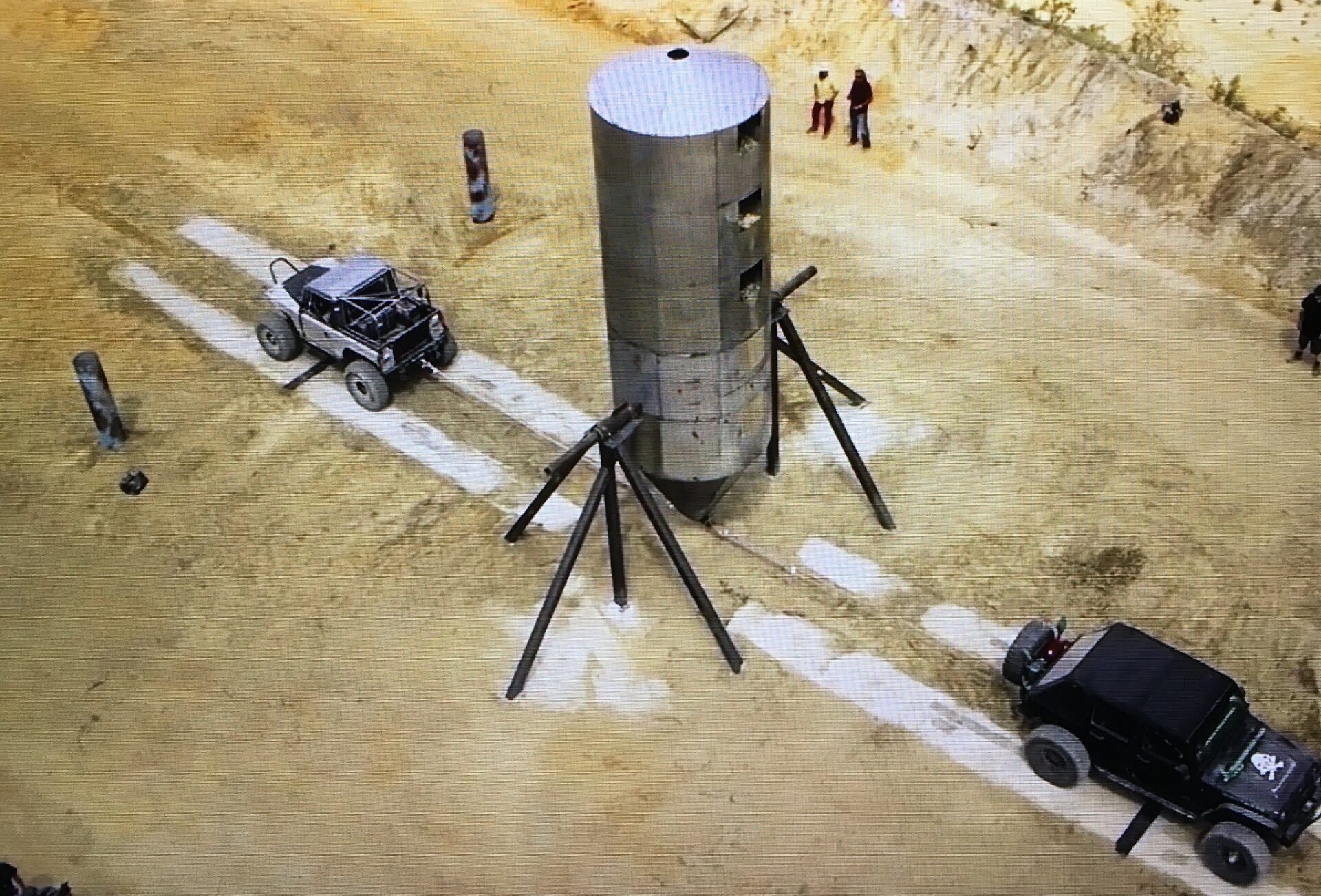 Sometimes that can keep you from going all the way over. And if you do roll, say if you roll over sideways, a lot of times that’s a higher pivot point that between that and your roll cage, it will keep from smashing your engine, your hood all in. That’s what he saw, it was not. I put it on a trailer to take it down to Georgia for filming.