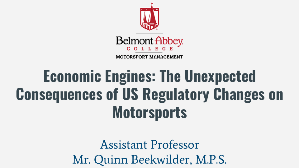 Quinn Beekwilder is the assistant professor and coordinator of the motorsports management degree at Belmont Abbey College. With a decade of experience at Charlotte Motor Speedway. And as one of the program’s first graduates, he brings [00:01:00] invaluable industry insights and addresses student concerns effectively.