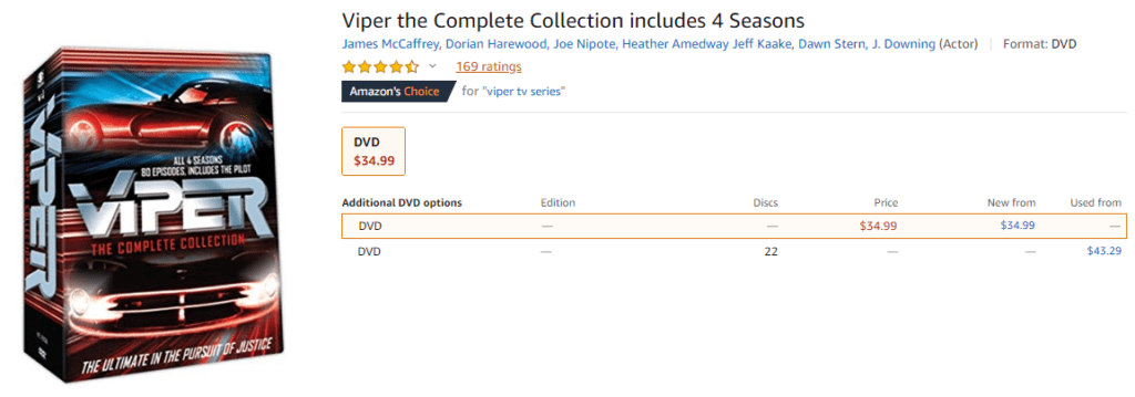 So what about the show? – Unfortunately, because VIPER aired in the evenings – unlike Magnum PI which I’d watched religiously after school at 4pm – I wasn’t able to catch the show on the regular, but I tuned in when I could. After the show ended in 1999 it all but vanished, not even the bargain bin at Blockbuster or FYE had any trace of the show. For decades now, I’ve been trying to find a copy, rekindle that spark, and more importantly… see how the story ended! I managed to get my hands on a poorly digitized VHS version of the pilot episode from a friend and have hung on to it like a prized jewel. With more modern technology, I’d set up google and amazon alerts to ping me about any new mentions of the show. Outside of some bootleg German voice-over copies, nothing official has ever surfaced, until a couple weeks ago…