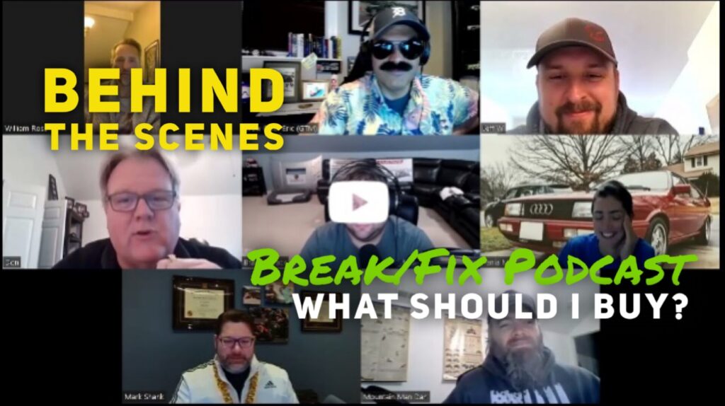 Crew Chief Brad: [00:00:00] Our panel of break fix Petrolhead are back for another rousing. What should I buy? Debate using unique shopping criteria. They’re challenged to find our first time collector, the best vehicle that will make their friends go. Where do you get that? Or, what the hell is wrong with you at the next cars and coffee?